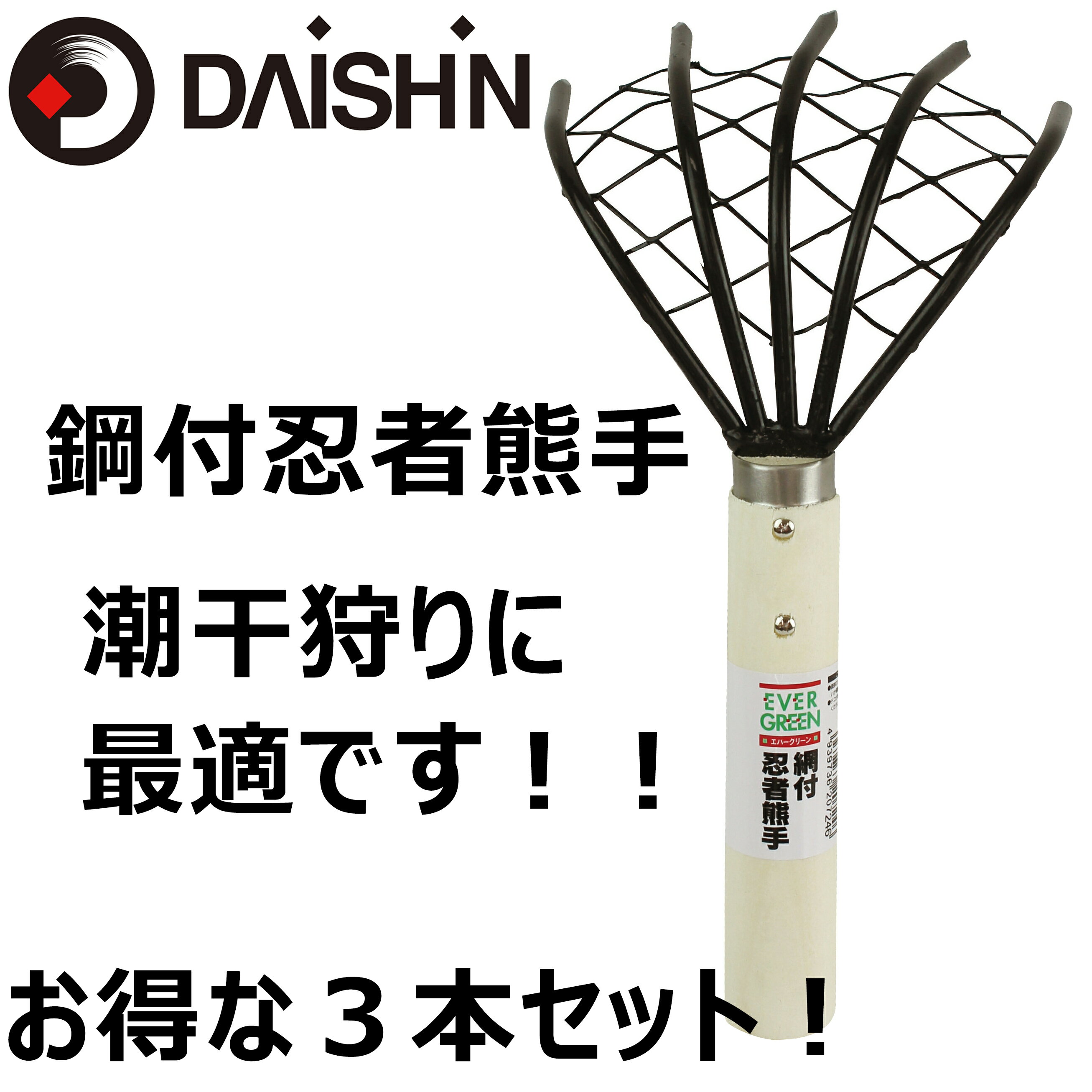潮干狩りに便利に使える網付きの忍者熊手はいかがでしょうか?ご家族で行く時にお得なお値段で購入できる3本セットまとめ買いができるので、オススメしたいです。