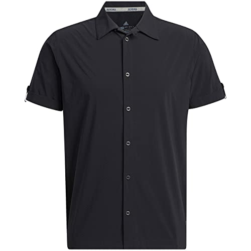 光沢感のある細かいドット柄のドビー素材が使われているアディダスの半袖シャツです。