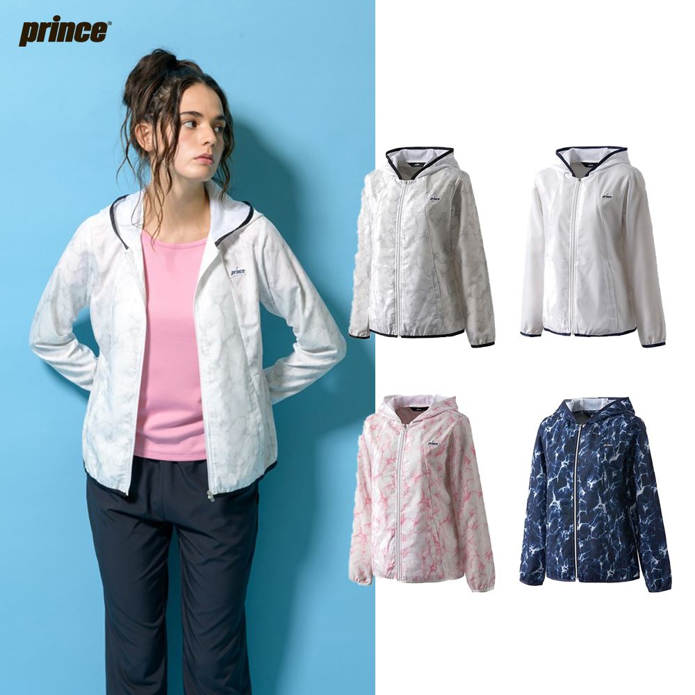 プリンスの2022年最新モデルのウィンドジャケットです。軽く羽織るだけでおしゃれに見えます。フロントジップを閉じれば、小顔効果が期待できるデザインです。軽い着心地で、動きやすいですよ。