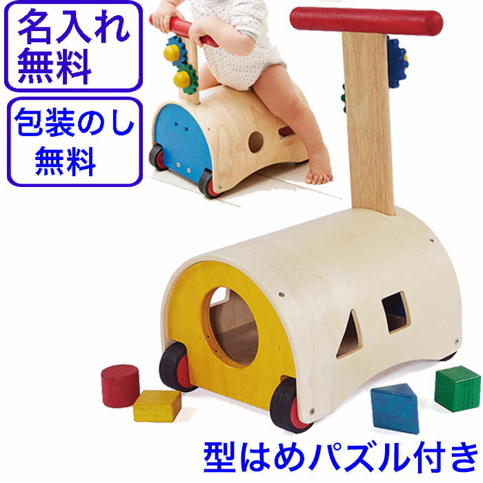 こちらの手押し車はよちよち歩きの時は押して、少し大きくなってからは乗って遊べるのが良いですね。おもちゃに名前も入れられるサービスも良いですね