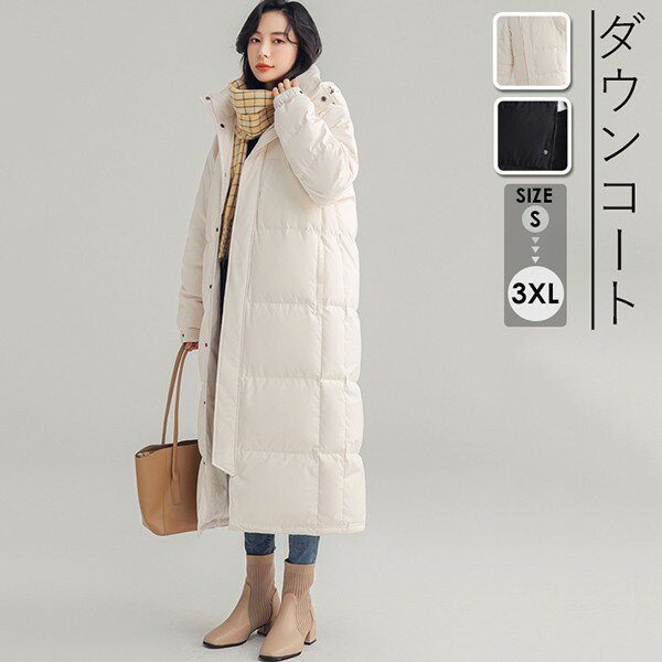 ゆったりとしたオーバーサイズのレディース用ダウンコートはいかがでしょうか。ダウンが90%+フェザーが10%使われており、軽くて保温性も良くて暖かいです。きれいめなロング丈になっています。ブラックかオフホワイトから選べまして、どちらとも合わせやすいのでおすすめです。