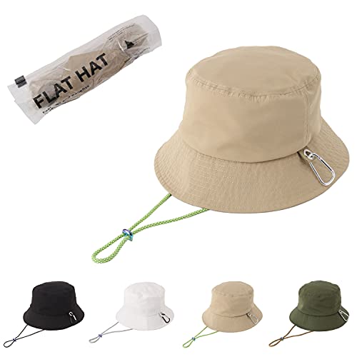 顔がしっかり影となるため紫外線対策ができるフラットハットです。撥水加工が施されているため突然の雨にも頭部を守ります。圧縮ケース付きで小さくたたむことができるため、携帯にも便利です。