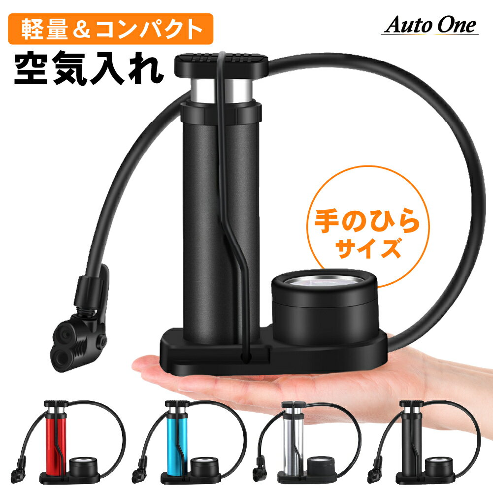 こちらの携帯空気入れはいかがでしょうか。手のひらサイズなので場所をとりません。足で踏み込むフィットタイプです。カラーは4色あります。