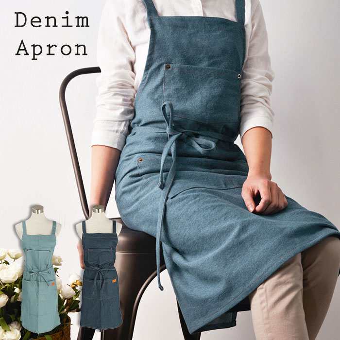 ロング丈のエプロンなので、水仕事の水除けになります。デニム素材でしっかりとしたつくりになっています。