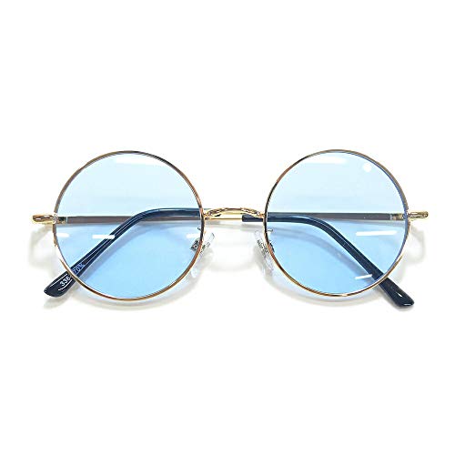 こちらのラウンド型サングラスは男女兼用で使えまして、クールでおしゃれな水色系レンズですのでいかがでしょうか。値段もお手頃です。UVを99.9%カットしてくれますので安心です。