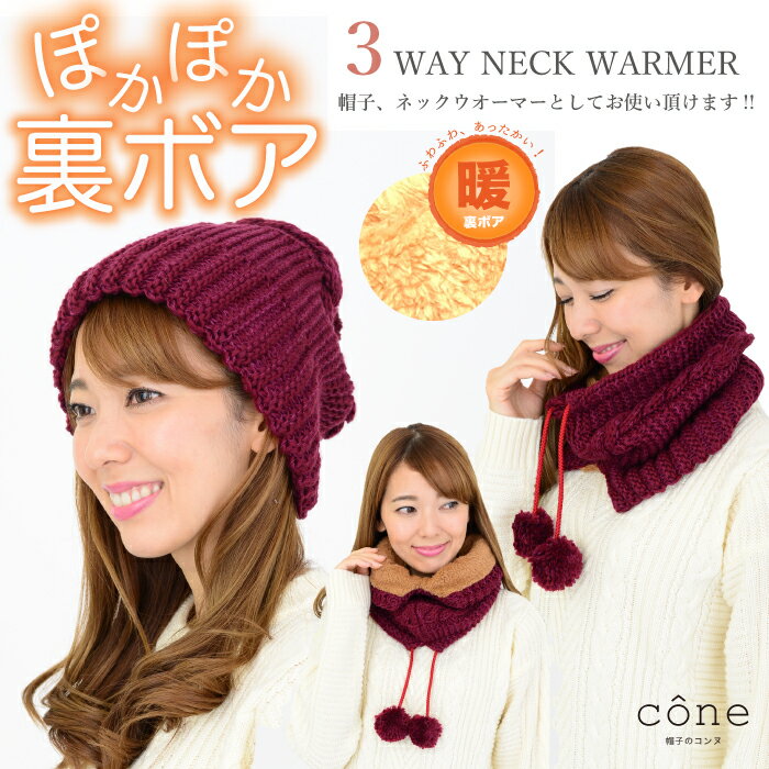三通りの使い方が出来て、あると便利なネックウォーマーです。こちらは裏ボアでモコモコして気持ちがいいですよ。
