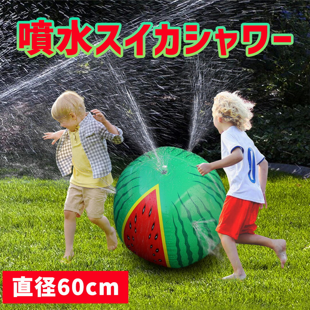 4か所から水が噴射する、可愛いスイカ柄ボールの噴水スイカシャワーはいかがでしょうか。空気を入れてホースにつなぐだけで簡単に準備できます。ボールを転がしたり追いかけたりしながら、思い切り楽しめます。
