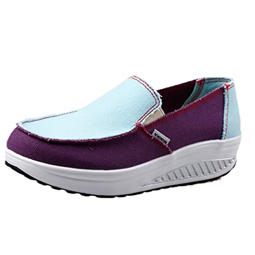 歩きやすくて蒸れない、白とパープルがおしゃれな紐なしウオーキングスニーカーです。これはおしゃれで履き心地よく涼しく、オススメです。