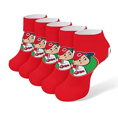 イラスト付きのカープソックス5足組。消臭抗菌、通気性があり快適、吸汗速乾、で赤が素敵なカープ靴下です。
