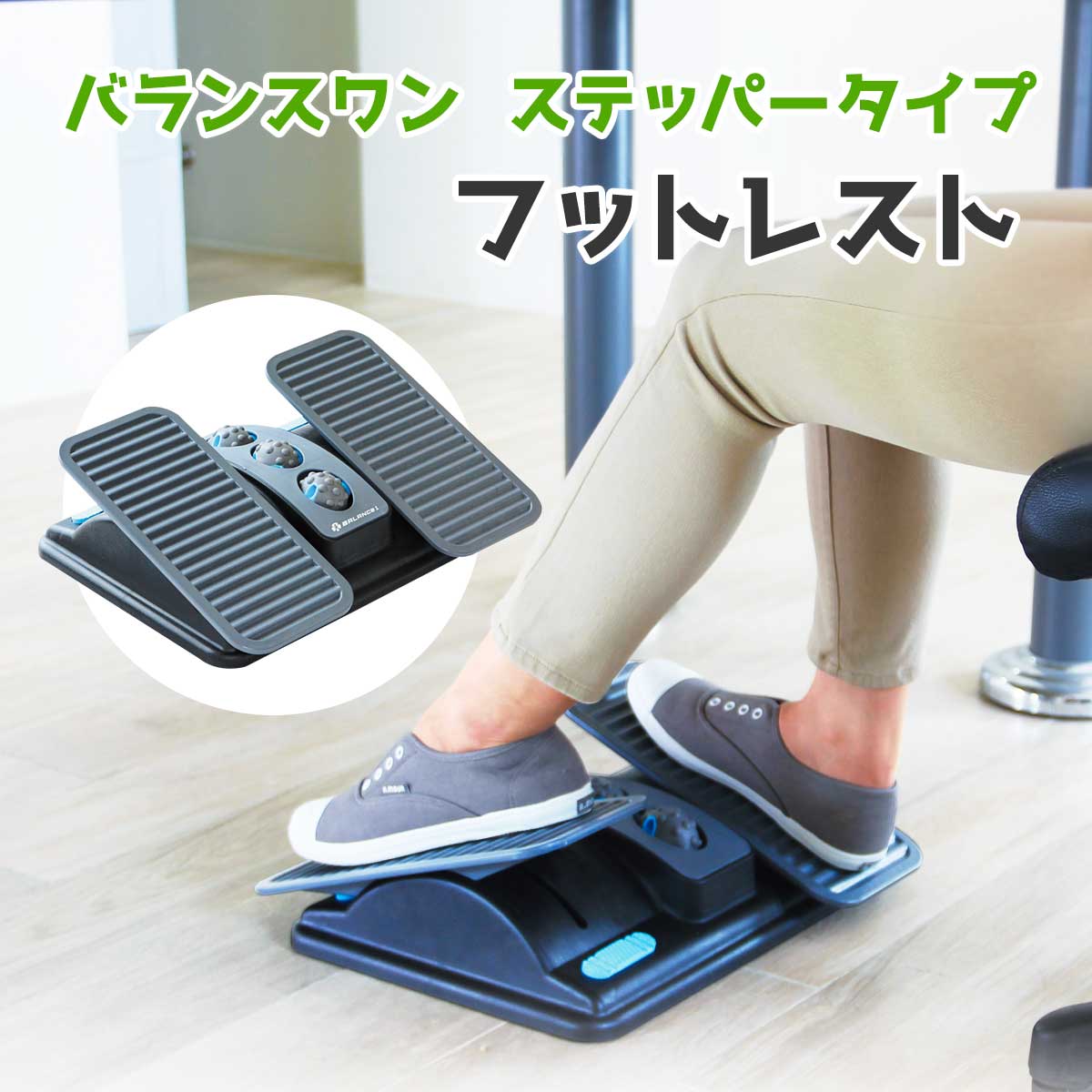 座ったままの状態でステッパーの運動ができるフットレストです。無理のない範囲で、テレビでも見ながら気軽に運動ができるのがよいですね。フットプレート中央に足裏を刺激できる回転式のマッサージボールが付いており、グリグリすると気持ちがよいです。
