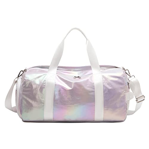 虹色に輝くシルバーカラーの生地はなかなか見かけない珍しいバックだと思います。容量も十分でショルダーストラップも付いています