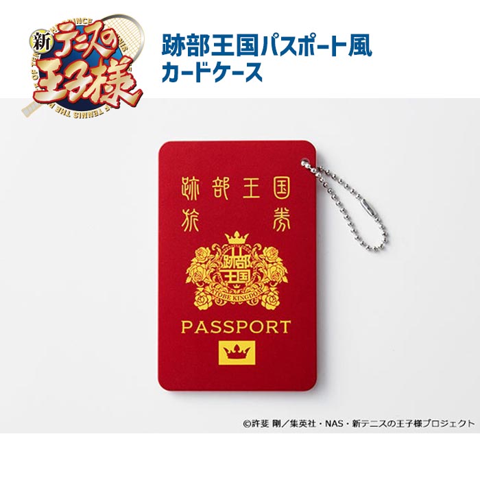 テニスの王子様で屈指の人気を誇るキャラクター・跡部景吾様。そんな跡部様は新テニスの王子様になってから作中で眼力(インサイト)を極めた結果、新しい国を建国してしまいました。こちらはその跡部王国パスポート風カードケースです。中に跡部様コラボのTポイントカードなども入れられ最高のグッズです。これがあればあなたも跡部王国に入国できるかも…!