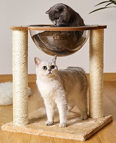 こちらの猫用クリアボールは如何でしょうか。地面から46㎝のところにボールが設置されたタワー状になっていて、高い場所が好きな猫ちゃんの習性にピッタリです。ボールを支える柱にはサイザル麻が巻かれてあって、爪とぎにもなるから便利でおすすめです。