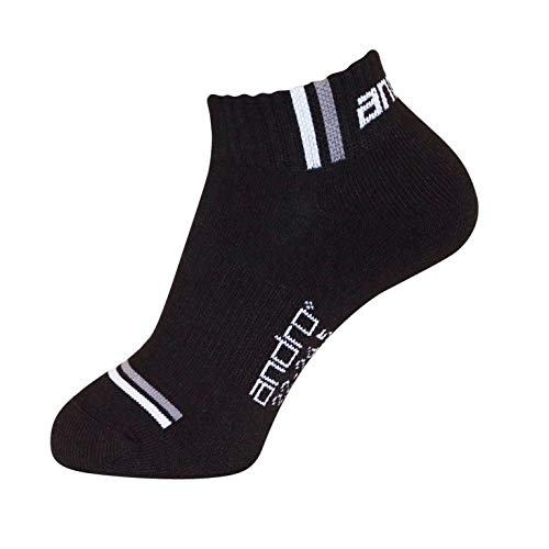 androの卓球ソックスはいかがでしょう。ミッドショート丈で抗菌防臭の高機能、ブラックのおしゃれなソックスです。