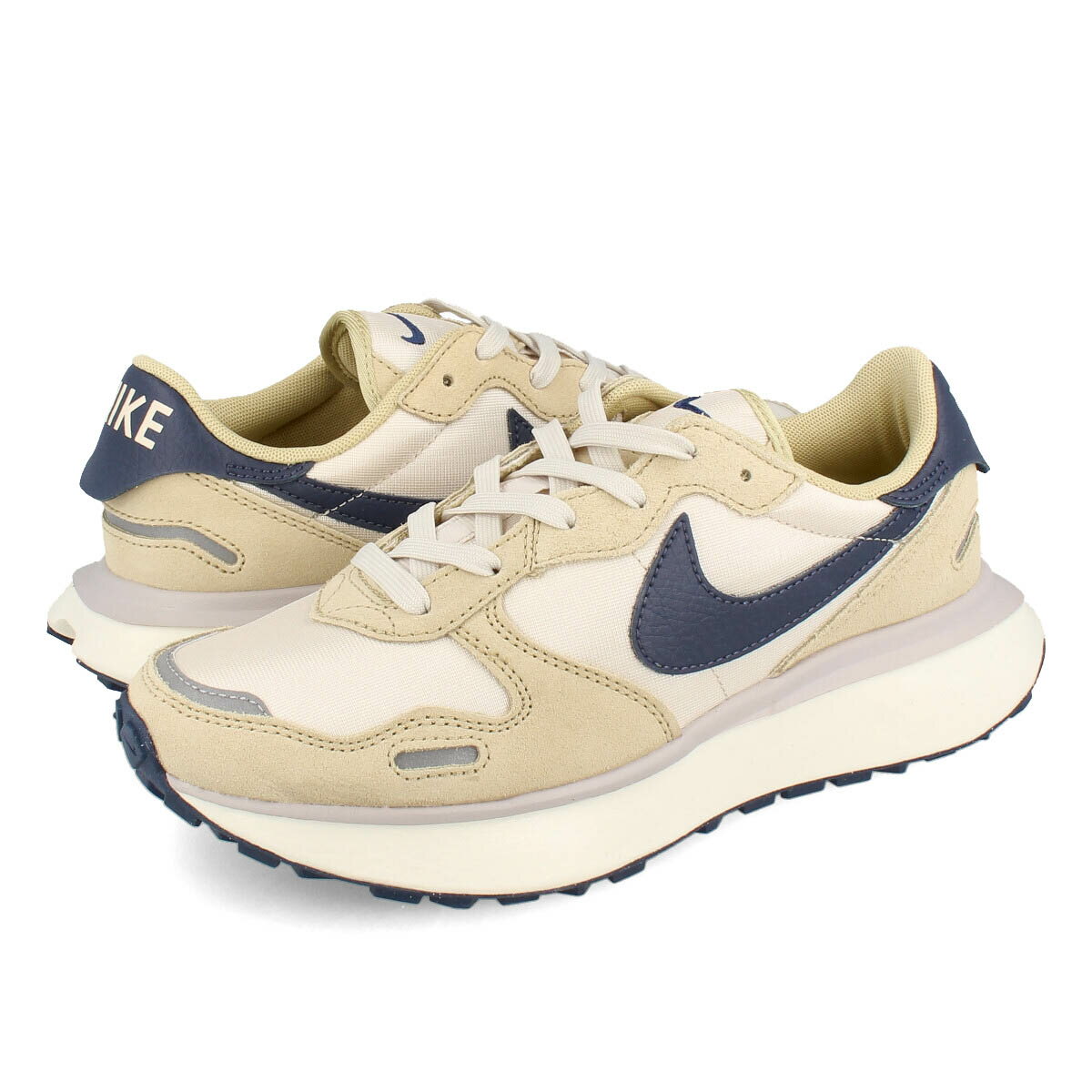 淡いベージュに少し濃い目のベージュが部分的に入っていて、紺色のナイキマークが遠くからでもはっきりわかるようなデザインでとてもスポーティーでおしゃれですね。