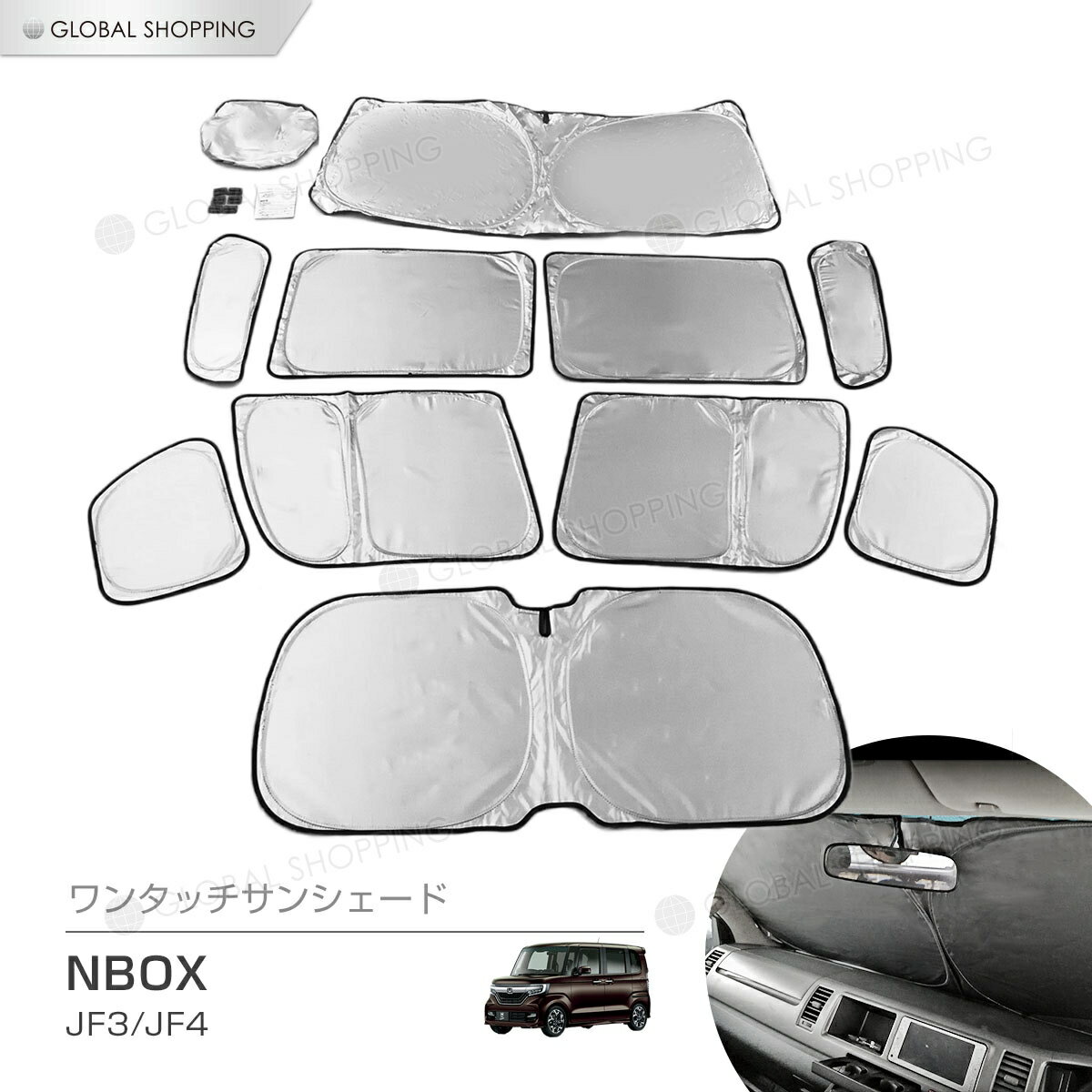 ホンダのNーBOX専用設計のサンシェードで10枚のセットで車中泊などの使用にもぴったりで保温効果もあって使いやすいです。