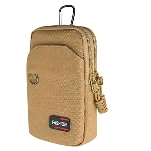 スマホも入るカラビナ付き小物入れはいかがでしょうか?背面にはベルト通し付きで金具にストラップをつけるとショルダーにもなる3WAYです。ゴルフではバッグにつりさげたりウエストポーチとして持てて便利ですよ。ファスナーポケットが2つ表側にはオープンポケットが1つありスマホ画面を傷つけずに他の小物を入れることができます。撥水性のある丈夫な生地で雨がかかっても中にしみません。軽量でお薦めです。