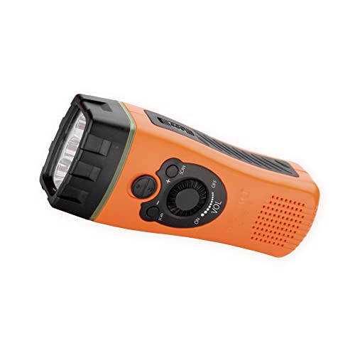 防災用の懐中電灯です。手回し充電ができますし、防災ラジオを兼ねています。手ごろな大きさなので持ち運びやすく、コスパも高いと思いますよ。
