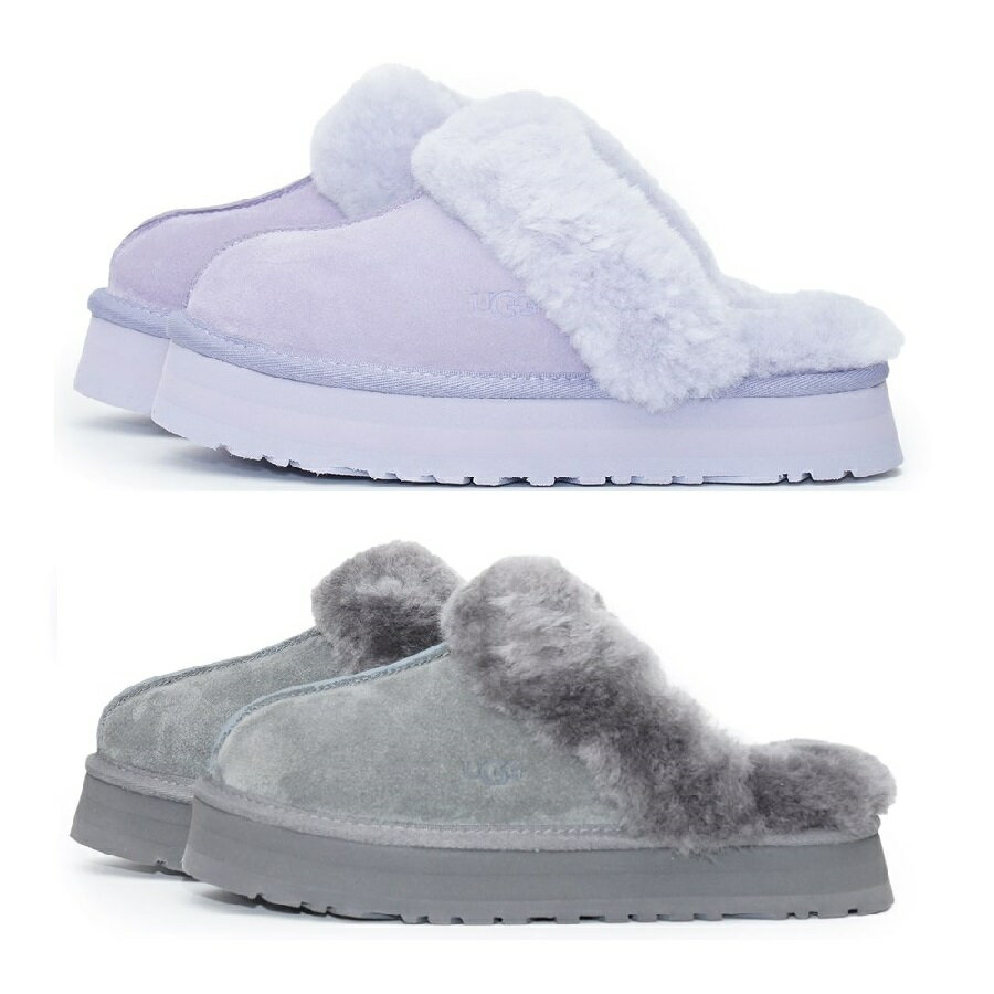 UGG製のファー素材のサンダルで厚底の可愛らしいデザインでルームシューズとしての使用にぴったりです。