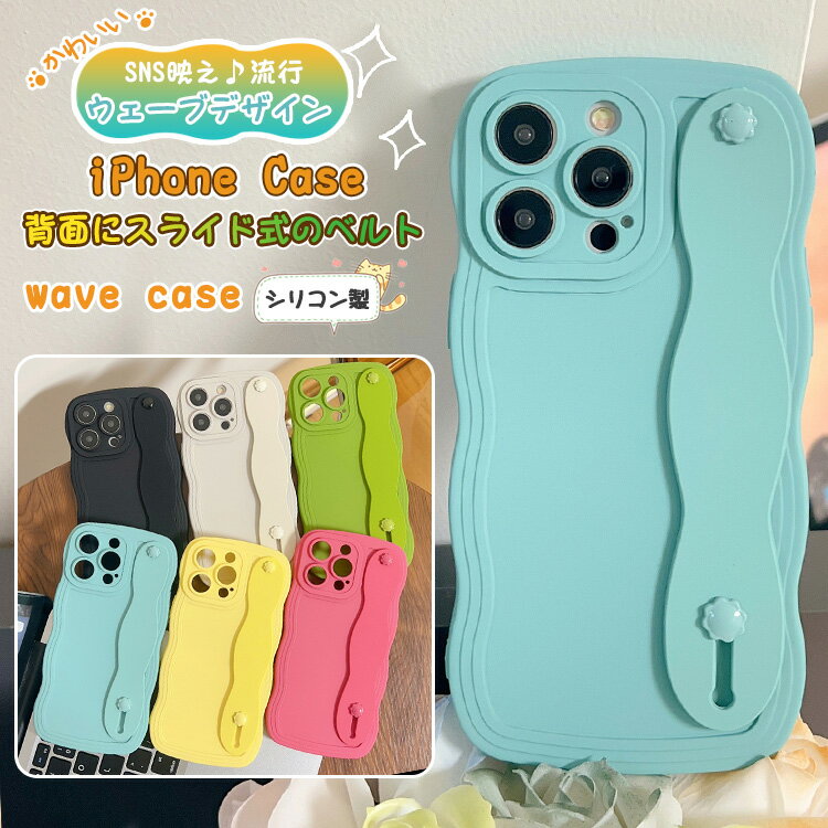 シリコン製で手に馴染むウェーブデザインのこちらのスマホケースはいかがでしょう?ベルトがついてるのも持ちやすくて便利です。選べる色が多いのも嬉しいですね。