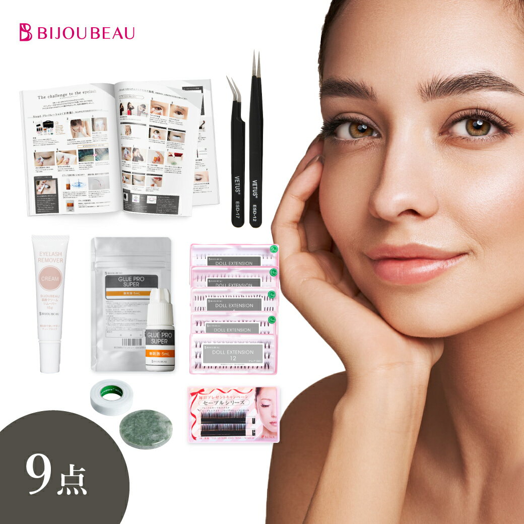 こちらのセルフマツエク9点セットはいかがでしょうか。低刺激で肌に優しく、マニュアル付きなので初心者の方にぴったりだと思います。