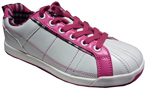 白とピンクのバイカラーがすごくデザイン性が高いオシャレなレディースシューズです。ゴルフに向いていますよ。