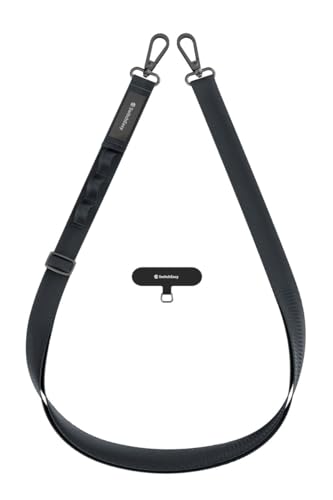 スマホ用のショルダーストラップです。斜め掛けができますし、太めなので肩に食い込んだりしません。iPhoneの持ち歩き・落下防止にぴったりですよ。