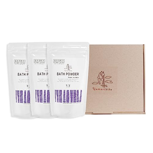 「ゆもりびと」の入浴剤です。温泉の素・3個セット。手軽に温泉気分を楽しむことができます。心身ともにリラックスができますし、軽量容器も付いていますよ。