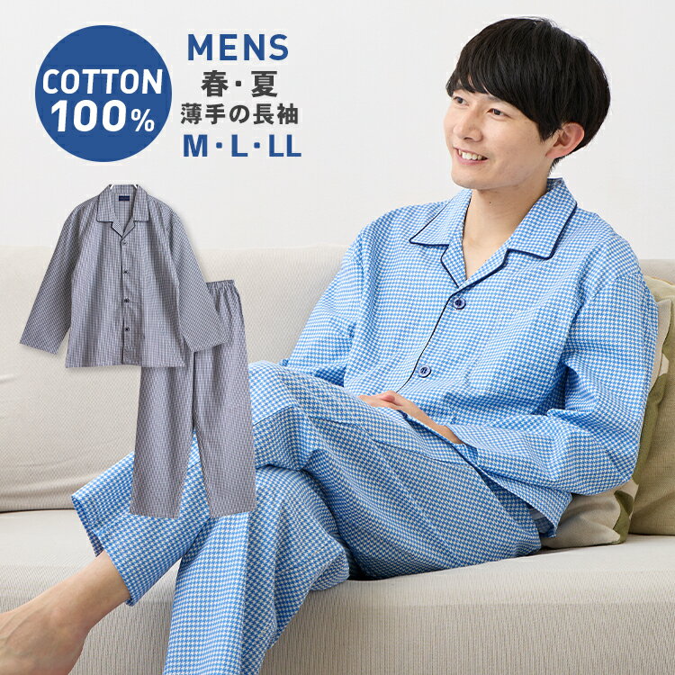 前開きで着やすいメンズパジャマで、着心地のよい綿100%素材はいかがでしょうか。さらっとした肌触りが心地よいのでおすすめです。