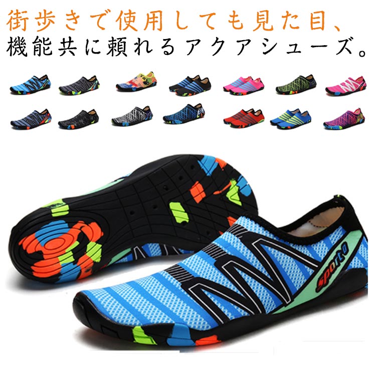水陸両用でアウトドアに最適な軽量マリンシューズ。岩場でも足を守る安心設計で、中敷き付きで快適フィット。男女兼用&大人用デザインで、海・川・ジムなど幅広く活躍します。