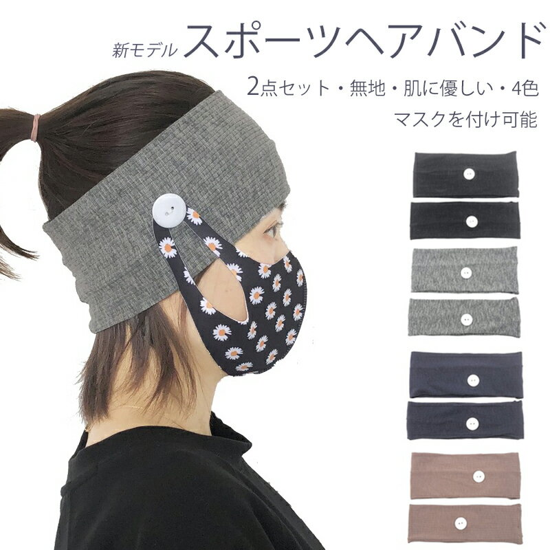 レディース用のおしゃれなヘアバンドです。ジムトレーニング用の汗止めにぴったりですし、マスクつけのボタンも付いていますよ。