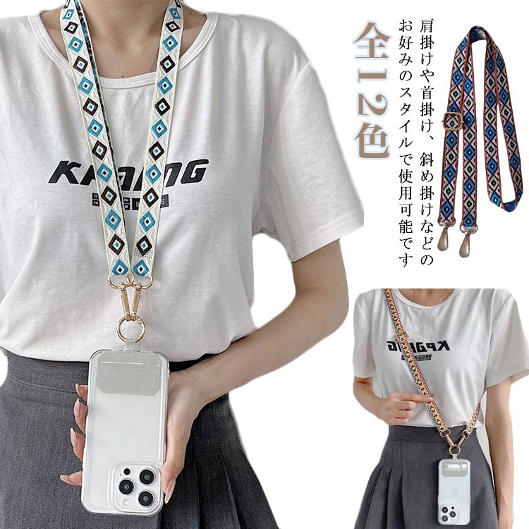 肩への負担が少ないやわらか幅広ベルトの携帯ストラップは、デザインもオシャレで長さ調節も可能なのが嬉しいですね!カラーも沢山あってどれも可愛いです。