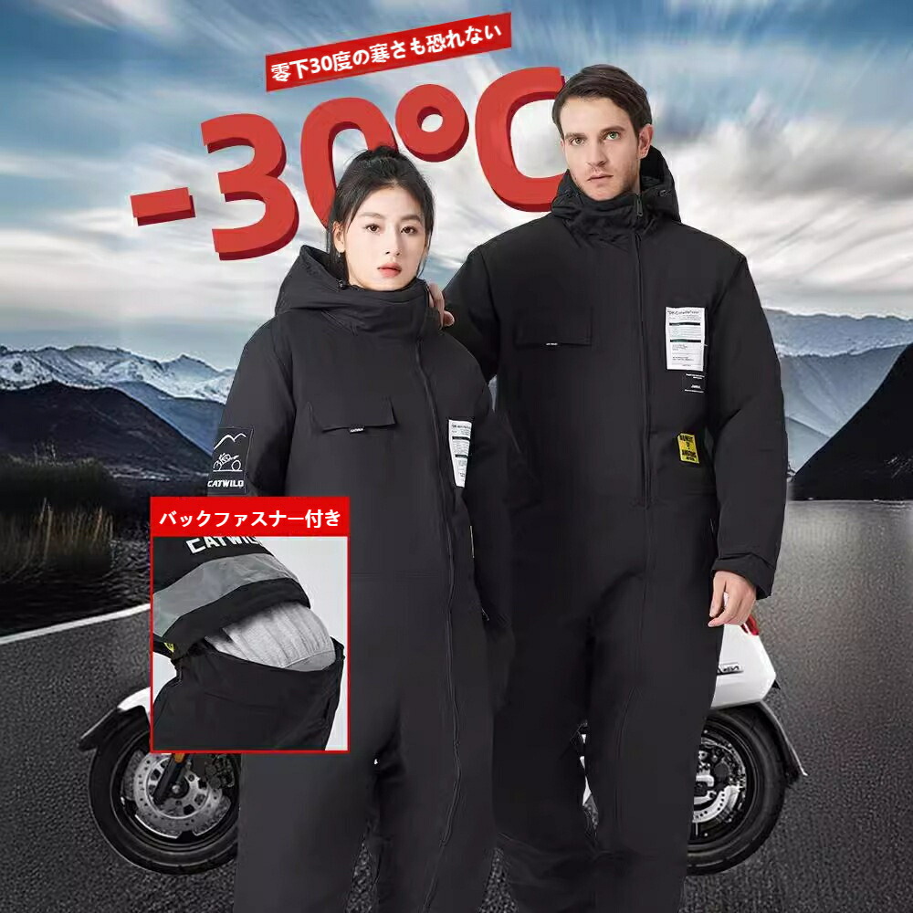 こちらの防寒つなぎはいかがでしょうか。防風、防水、防寒性が高いので冬場の作業にもぴったり。バックジッパー付きで着脱もスムーズにできますよ。オススメします。
