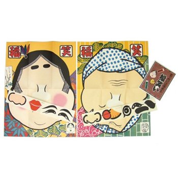子供用の福笑いセットです。おかめ・ひょっとこの2点セット。お正月にふさわしい遊びですし、お子さんたちに喜ばれると思います。