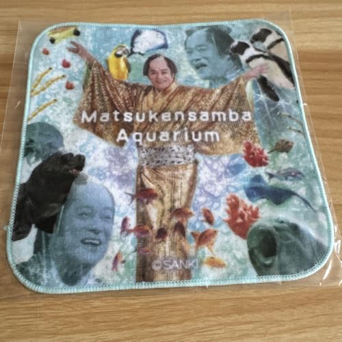 仙台の水族館とのコラボ企画があったのですが、その時のハンカチはいかがでしょうか。可愛らしい海の生き物に混ざり、センターで煌びやかにポーズをとるマツケンの存在感がポイントのハンカチです。なんとも言えないコラボレーションが病みつきになるアイテムです。