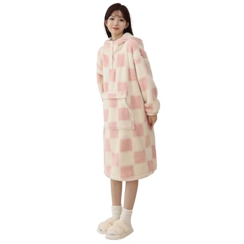 ワンピースタイプの着る毛布はいかがでしょうか?ホワイトとピンクのチェック柄になっておりかわいいデザインです。ひざ下まであるロングタイプで長袖とフード付きであったか!両面起毛でふわふわ!裏起毛は保温性が高く、表は冷気を通しにくいです。厚手の毛足長めのフリース素材でボリュームもあります。肌ざわり抜群で夢心地ですよ!首元はハーフジップで着脱簡単!フロントには両方から手が入るポケット付きで便利です。