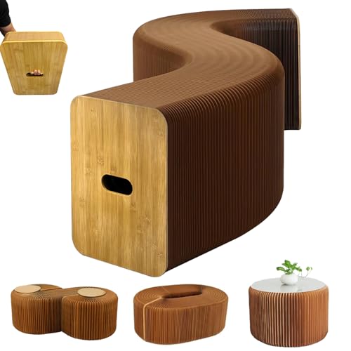 アコーディオン構造の紙椅子は、使う時だけ広げて設置できる折りたたみ式ペーパーベンチ。クラフト紙素材ながら安定感があり、伸縮自在で最大1.5mまで対応します。省スペース収納が可能で持ち運びも簡単。付属の革パッドで座り心地を向上し、ギャラリーや展示会、リビングや休憩室など幅広いシーンで活躍するデザイン性の高いスツールです。
