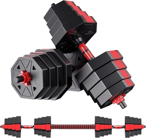3wayで使えるこちらはいかがでしょうか。重さの違う3種類のプレートが4枚ずつ付属しており、ダンベルとしては最大10kg×2になります。プレートの固定が簡単かつ短時間でできるワンタッチロック式で、ポリエチレンコーティングが施されていて錆びる心配がなく、八角形で転がらないのもお勧めポイント。4030円とリーズナブルなのも良いかと。
