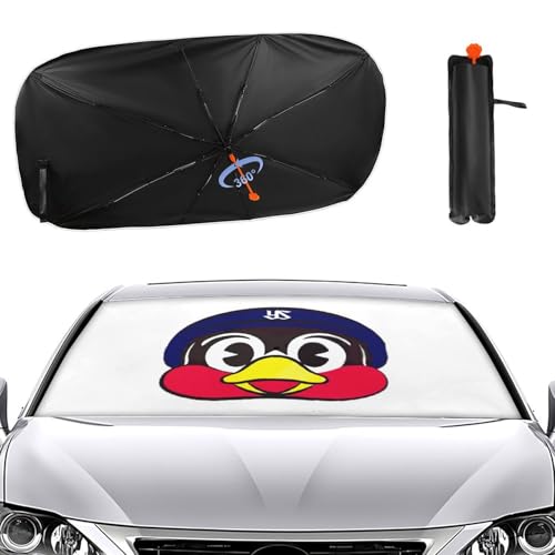東京ヤクルトスワローズ の人気マスコットのつば九郎 のイラストが一面にかかれた車のサンシェードでかわいいです