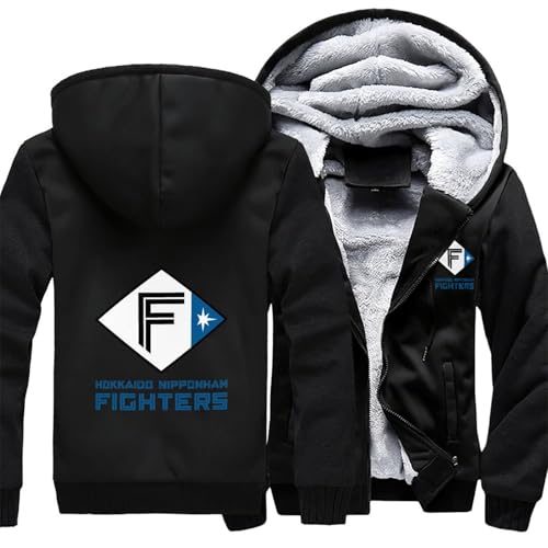 日本ハムファイターズ仕様のメンズ用ジップアップパーカーです。厚手・裏起毛で暖かく、フードもついています。大きいサイズもあります。