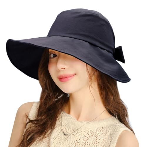 レディース向きのかわいらしいリボンが付いた、つば広の日除け帽子はいかがでしょう。紫外線対策に役立つ折りたたみハットです。