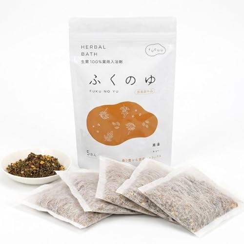 薬用入浴剤の「ふくのゆ」です。生薬10種配合の5包セット。疲労回復に効果がありますし、冷え性・肩こり対策にもなりますよ。