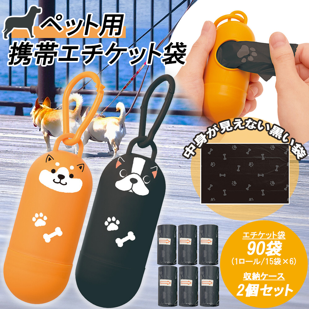 こちらはいかがでしょうか。ケースに犬が描かれたかわいいデザイン。ゴミ袋が柄入りの黒い袋で、中が見えずお洒落なのもお勧めポイントです。2個セットなので、カラビナでよく使うバッグ2つに付けたり親子で持ったりできるのも良いかと。本体のサイズは直径4×長さ10cmです。
