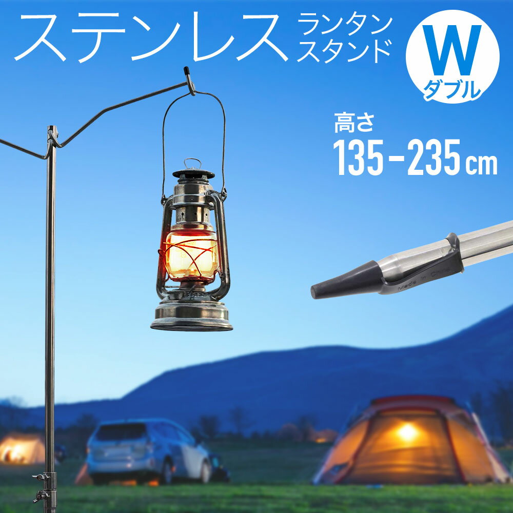 こちらはステンレス製のランタンスタンドです。細くて高いオシャレなデザインですが、強度もかなりあり安定感ありますよ。