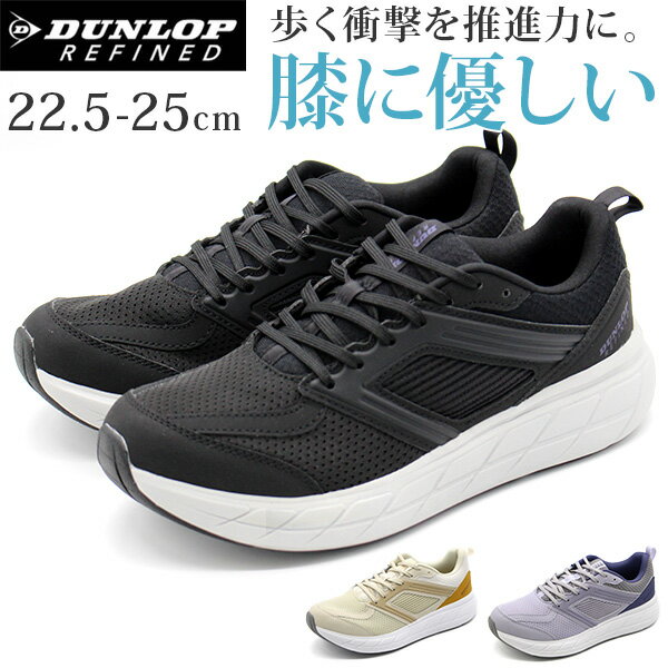 DUNLOP・REFINEDのレディース向け負担軽減の疲れにくいスニーカーです。シンプルでオシャレなデザインになっており、軽量・幅広の衝撃吸収で滑りにくく、膝に優しい履き心地のいい歩きやすいシューズです。コスト的にもリーズナブルなものですので、良いのではないかと思います。