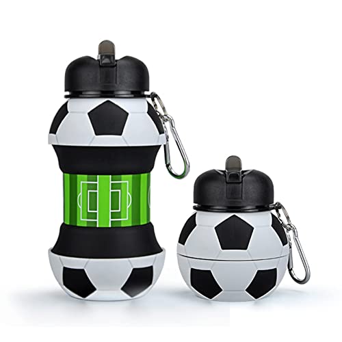 折りたたむとまるでサッカーボールのような球体になる水筒はいかがでしょうか?カラビナ付きでバッグやウエストベルトなどに吊るして持ち歩けますよ。耐衝撃性のあるシリコン製で液漏れしません。ストローや直飲みどちらもできます。ボールを上下にひっぱると縦型にのびて500mlのドリンクが入ります。耐熱性・防冷製があります。サッカーをしたりスポーツ観戦に持っていくのにピッタリ!