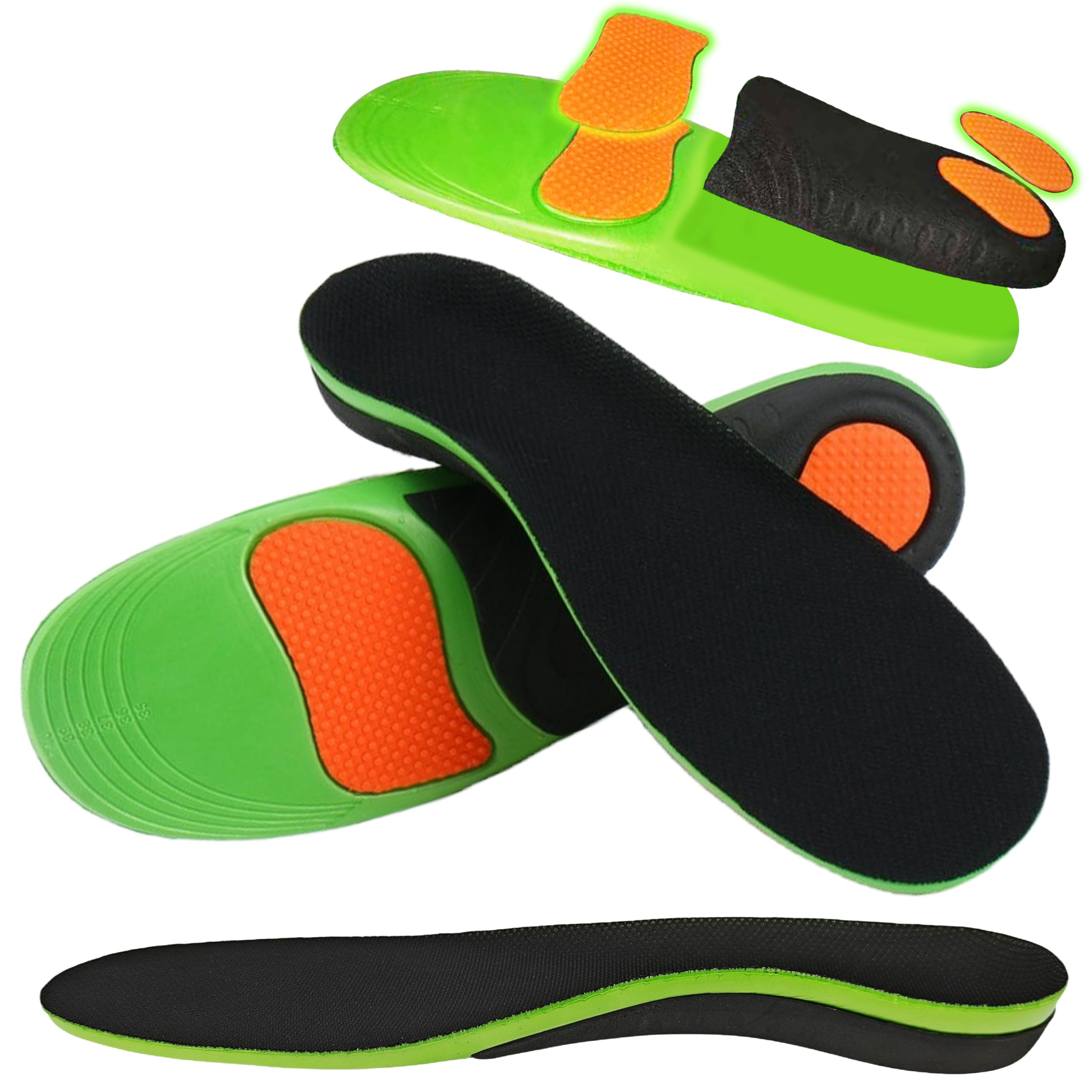 メンズ・レディース向け偏平足のサポートになる中敷き・インソールです。ブラック又はグリーンカラーのシンプルでオシャレなデザインになっており、触り心地のいいベルベット地で衝撃吸収・消臭の土踏まずサポートになるインソールです。コスト的にもリーズナブルなものですので、良いのではないかと思います。