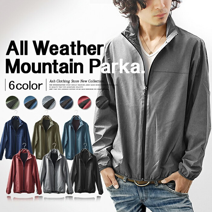 メンズ用軽量薄手でナイロン素材のマウンテンパーカーです。撥水性とUVカット性能にすぐれます。無地なので合わせやすいです。