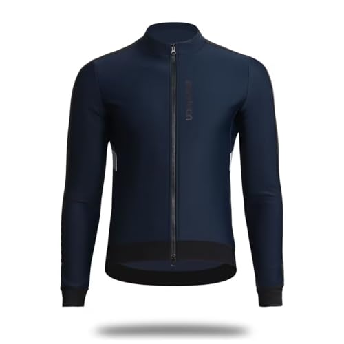 Morethanの裏起毛サイクルジャージは、秋冬ライドに適した長袖メンズモデルです。5℃対応の保温性で冷えを防ぎ、快適な着心地を保ちます。撥水加工により小雨や汚れにも強く、反射素材付きで夜間の視認性も向上。バックポケットを備え、補給食や小物の収納にも便利です。ネイビーカラーで落ち着いた印象があり、機能性とデザイン性を兼ね備えたサイクルウェアです。